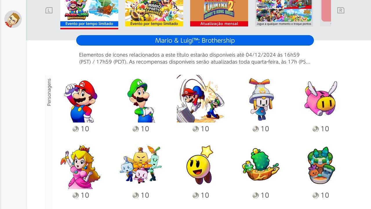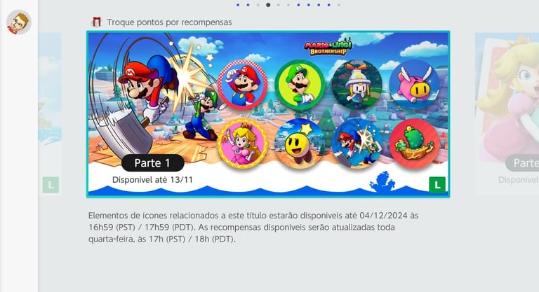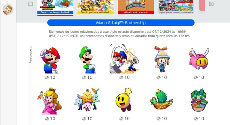 A primeira onda dos ícones já está disponível para baixar e ficará resgatável até dia 13 de Novembro de 2024. São oito ícones característicos do jogo, incluindo Mario, Luigi, Peach e mais.
