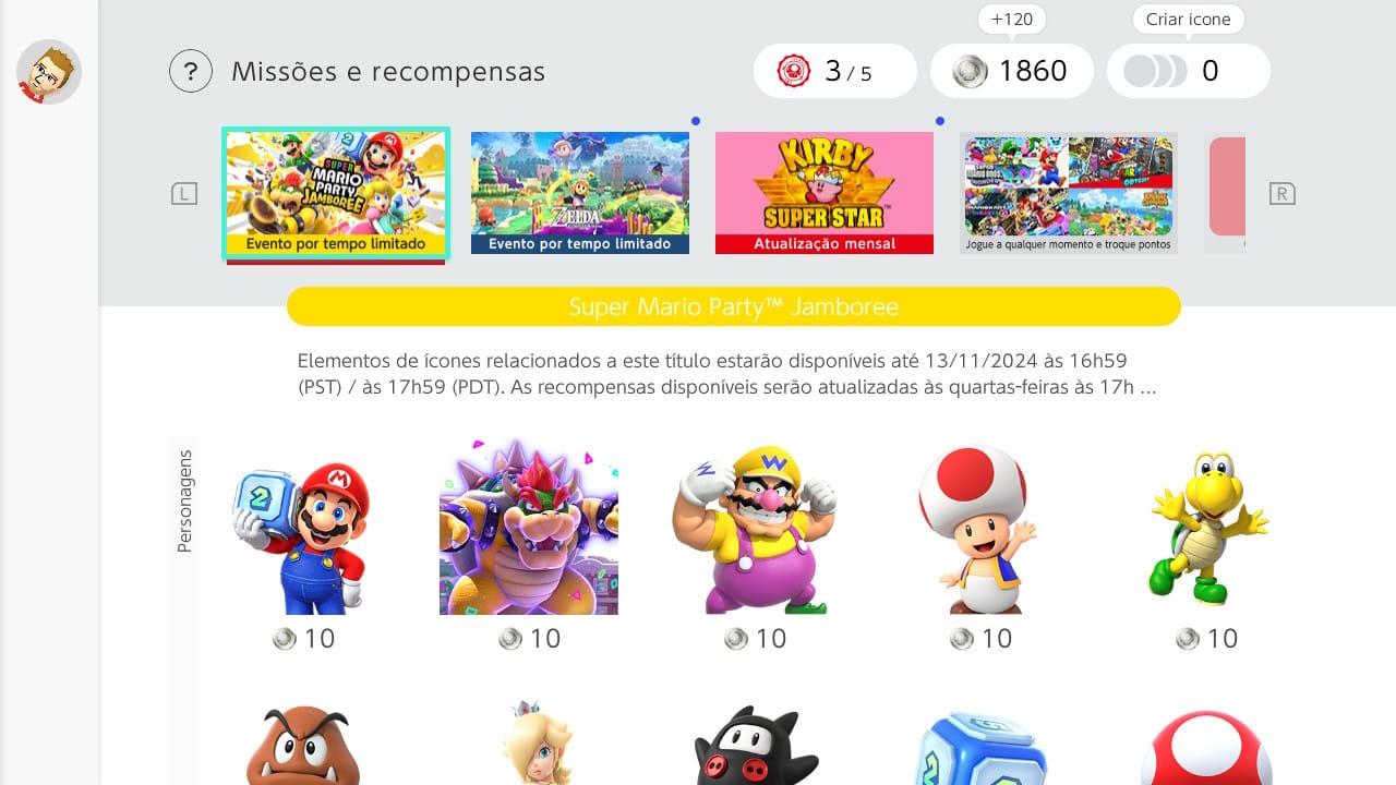 Os ícones já está disponível para baixar e ficará resgatável até dia 13 de Novembro de 2024. São oito ícones característicos do jogo, incluindo Mario, Bowser, Wario, Rosalina e mais, além de algumas molduras e fundos para resgate.