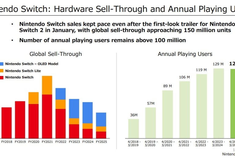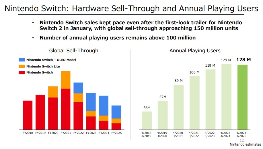 Se tratando de usuários ativos na plataforma, a Nintendo informou que foram mais de 128 milhões de jogadores que abriram algum jogo no Nintendo Switch no intervalo do ano fiscal de 2025