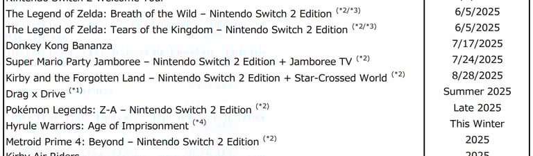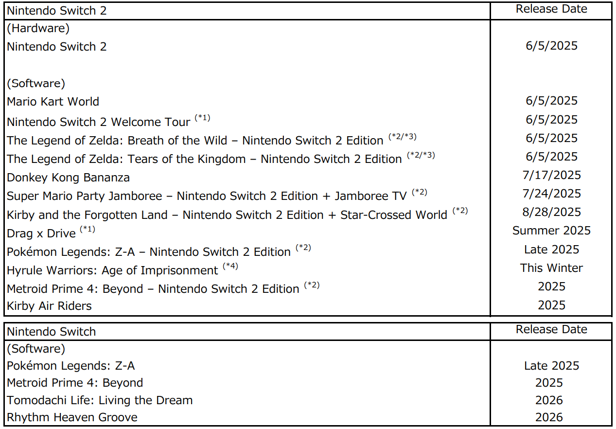 O calendário de lançamentos também foi atualizado, agora com lançamento do novo console Nintendo Switch 2 e seus jogos, porém as datas referente aos jogos do Nintendo Switch são as mesmas já divulgadas anteriormente.