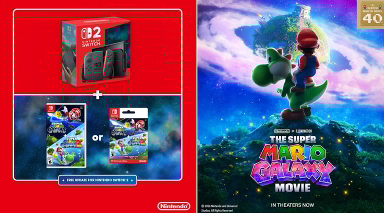 Tudo começou na semana passada, quando a Nintendo of America começou a propagar um novo pacote do Nintendo Switch 2 com o jogo Super Mario Galaxy 1 + 2 no valor de 499 doláres, onde os compradores escolhiam entre o jogo digital ou físico. Todas as grandes varejistas como Amazon, BestBuy e Gamestop já constam com esse pacote e promoção, que aproveitou o momento do filme nos cinemas e também comemoração de 40 anos da franquia Super Mario.
