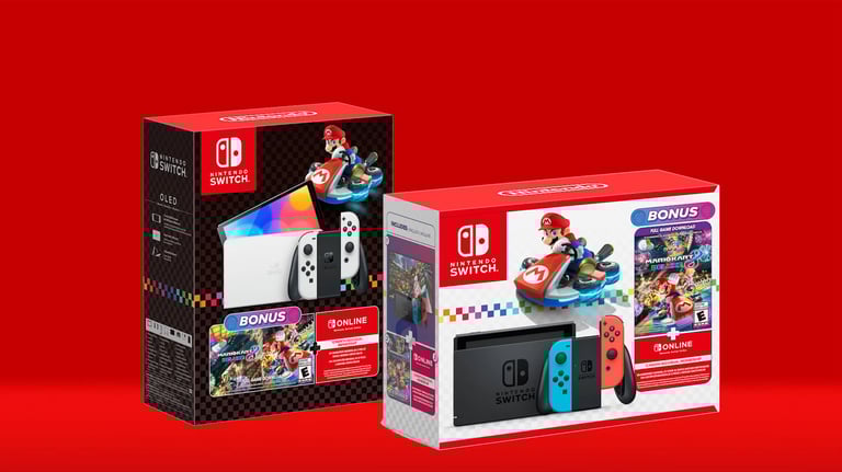 Nintendo of America anunciou dois pacotes de Nintendo Switch, praticamente uma renovação de um já existente. Ambos são com o jogo Mario Kart 8 Deluxe no formato digital + 12 meses de Nintendo Switch Online pacote tradicional, porém um com o modelo Nintendo Switch OLED e outro com o tradicional dentro da caixa.