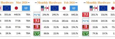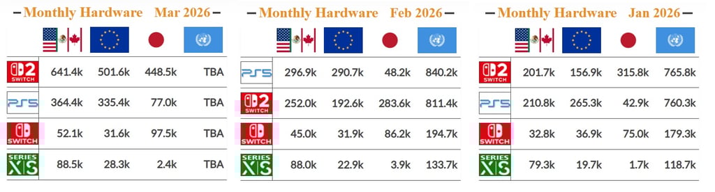 Olhando para o mercado Norte Americano, o mercado de venda de consoles em Março aumentou 69% comparado com o mês no ano anterior e isso ocorreu devido as altas vendas do Nintendo Switch 2. A procura maior pelo console foi maior também nesse mês que nos anteriores de 2026 devido ao lançamento do jogo Pokémon Pokopia. Ao olhar para o Playstation 5 no mesmo período, o crescimento foi de apenas 3%.