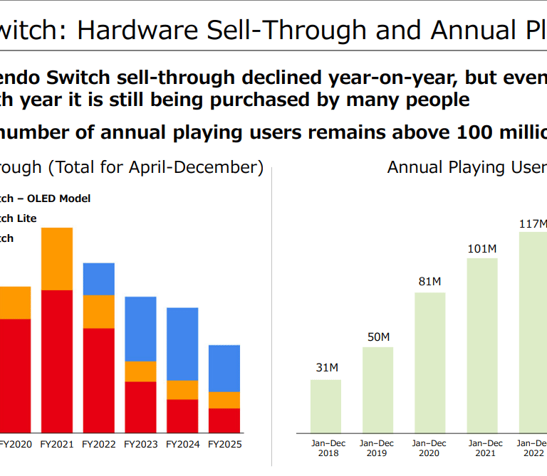 De acordo com a Nintendo, embora as vendas vem caindo ano a ano no último trimestre, o número ainda é bem estável devido ao console estar em seu oitavo ano de vida. Outro ponto que fez ano passado vender mais consoles foi a maior quantidade de edições especiais do Nintendo Switch OLED.