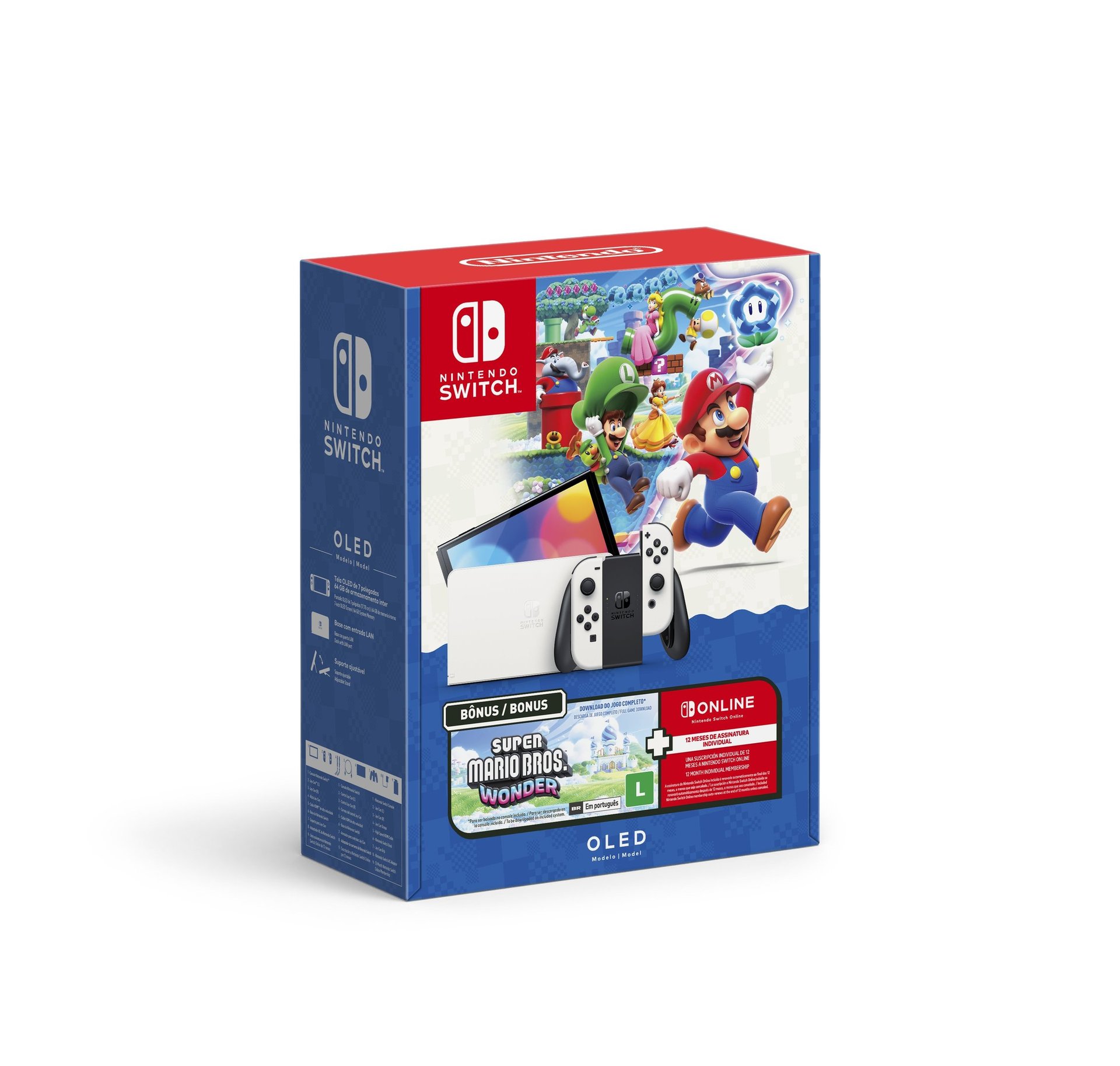 Este novo pacote chegará no Brasil no dia 24 de Outubro de 2024 e contém um Nintendo Switch OLED branco, uma cópia digital de Super Mario Bros. Wonder e 12 meses de assinatura do pacote individual do Nintendo Switch Online. O preço sugerido não foi informado.