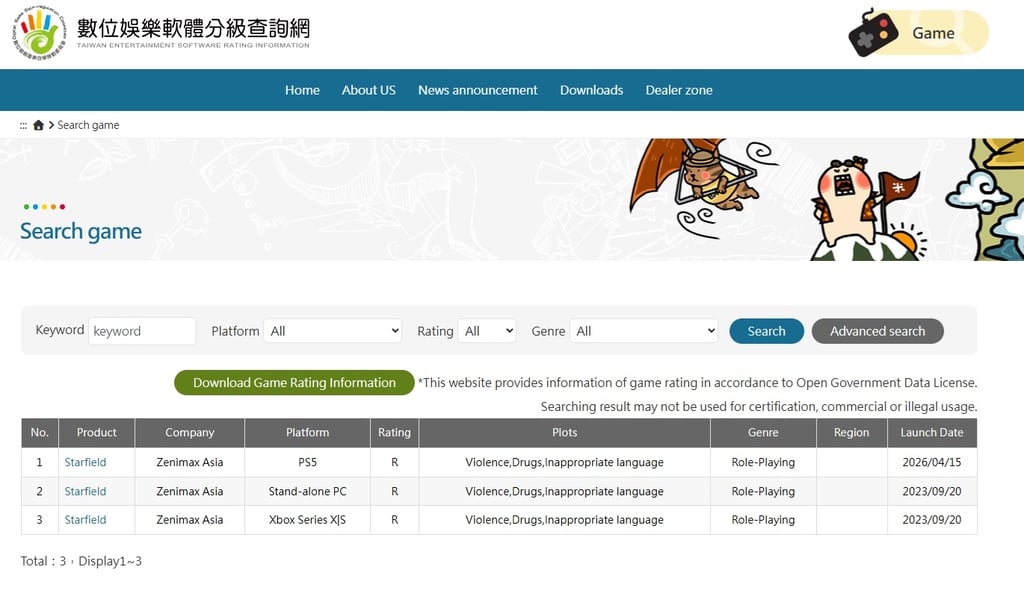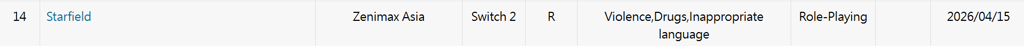 Uma imagem de classificação etária pelo Conselho de Classificação de Software de Entretenimento de Taiwan está circulando na internet, mostrando que Starfield foi listado para Nintendo Switch 2.